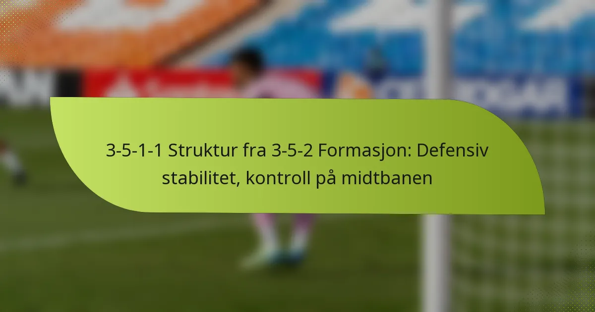 3-5-1-1-formasjonen er en taktisk tilnærming i fotball som prioriterer defensiv stabilitet og kontroll på midtbanen. Ved å bruke tre sentrale forsvarsspillere og fem midtbanespillere, skaper dette oppsettet et solid defensivt rammeverk samtidig som det muliggjør effektiv ballbevegelse og dominans i besittelse på midtbanen. Denne balansen gjør det mulig for lag å motvirke motstanderens angrep effektivt, samtidig som de opprettholder en strukturert formasjon på banen. Hva er 3-5-1-1-strukturen i fotball? 3-5-1-1-formasjonen er et taktisk oppsett i fotball som legger vekt på defensiv stabilitet og kontroll på midtbanen. Den har tre sentrale forsvarsspillere, fem midtbanespillere og en enkelt spiss, noe som gjør…