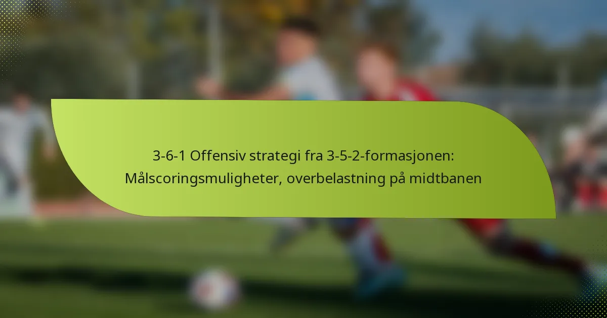 Den 3-6-1 offensive strategien i fotball fokuserer på å dominere midtbanen samtidig som den sikrer en robust defensiv oppstilling. Ved å bruke seks midtbanespillere kan lag skape numeriske fordeler, noe som fører til økt ballbesittelse og mange målsjanser gjennom strategisk posisjonering og raske overganger til angrep. Hva er 3-6-1 offensive strategien i fotball? 3-6-1 offensive strategien i fotball legger vekt på dominans på midtbanen samtidig som den opprettholder en solid defensiv struktur. Denne formasjonen lar lag skape mange målsjanser gjennom en kompakt midtbane og en enslig spiss, noe som maksimerer ballbesittelse og kontroll over spillet. Definisjon og struktur av 3-6-1…