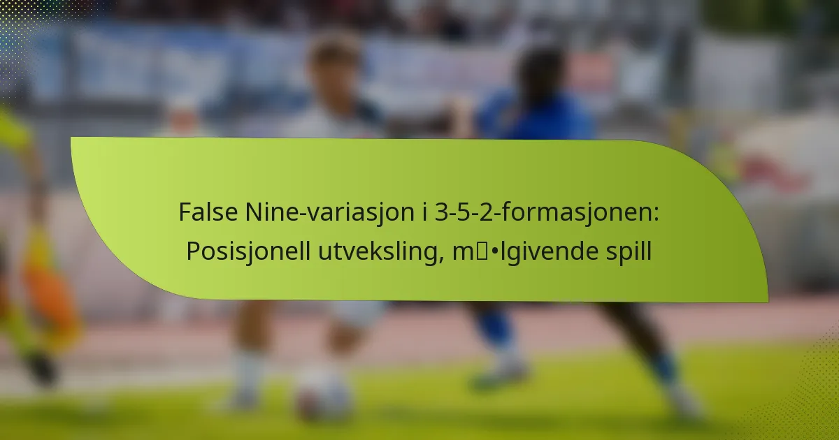 3-5-2-formasjonen utnytter strategisk to spisser som spiller avgjørende roller både i å score og legge til rette for mål. Spissene i denne oppstillingen må utmerke seg i posisjonering og samspill, og sørge for at de utnytter scoringsmuligheter samtidig som de samarbeider sømløst med midtbanespillere. Deres evne til å navigere i rom effektivt er avgjørende for å maksimere formasjonens angrepspotensial. Hva er 3-5-2-formasjonen og dens nøkkelfunksjoner? 3-5-2-formasjonen er en taktisk oppstilling i fotball som benytter tre sentrale forsvarsspillere, fem midtbanespillere og to spisser. Denne strukturen legger vekt på både defensiv soliditet og angrepsfleksibilitet, noe som gjør at lag kan kontrollere midtbanen…
